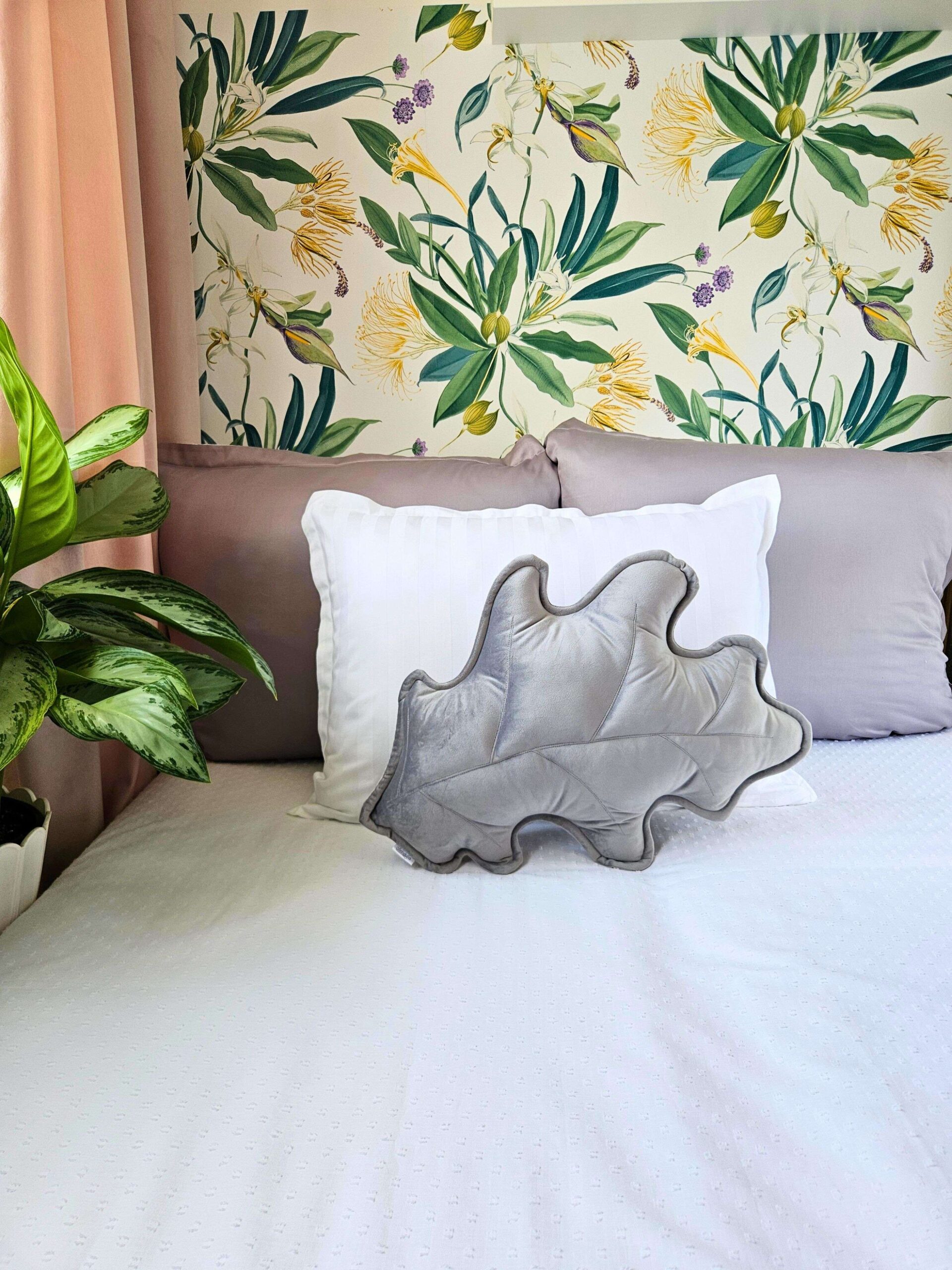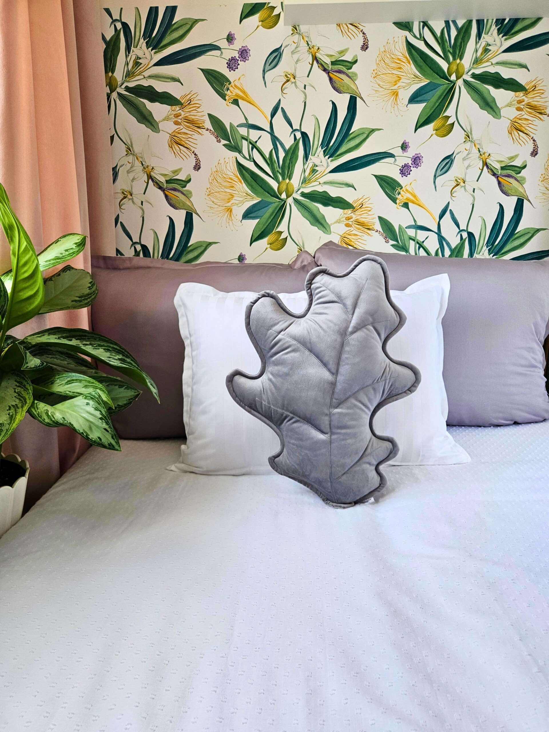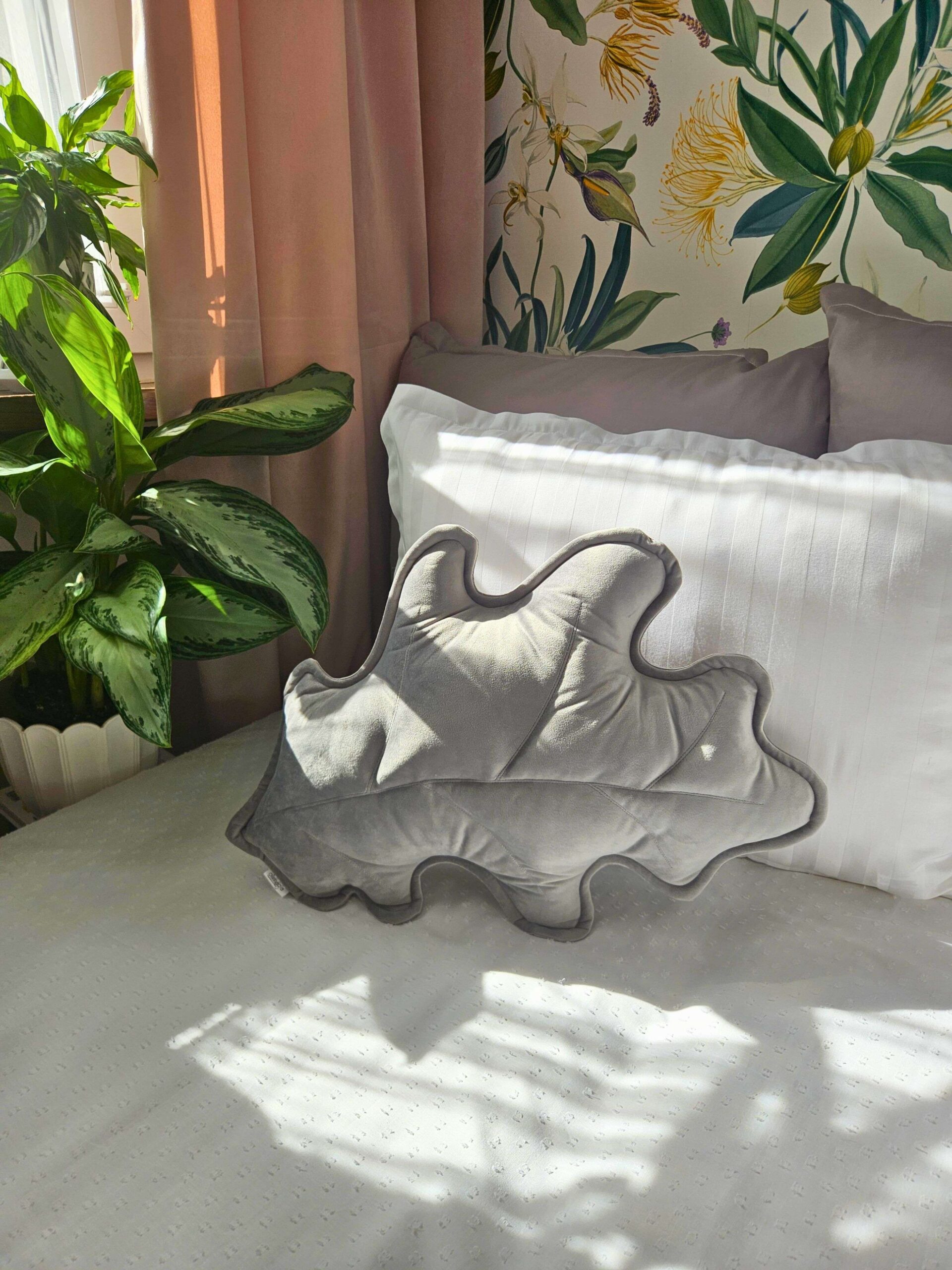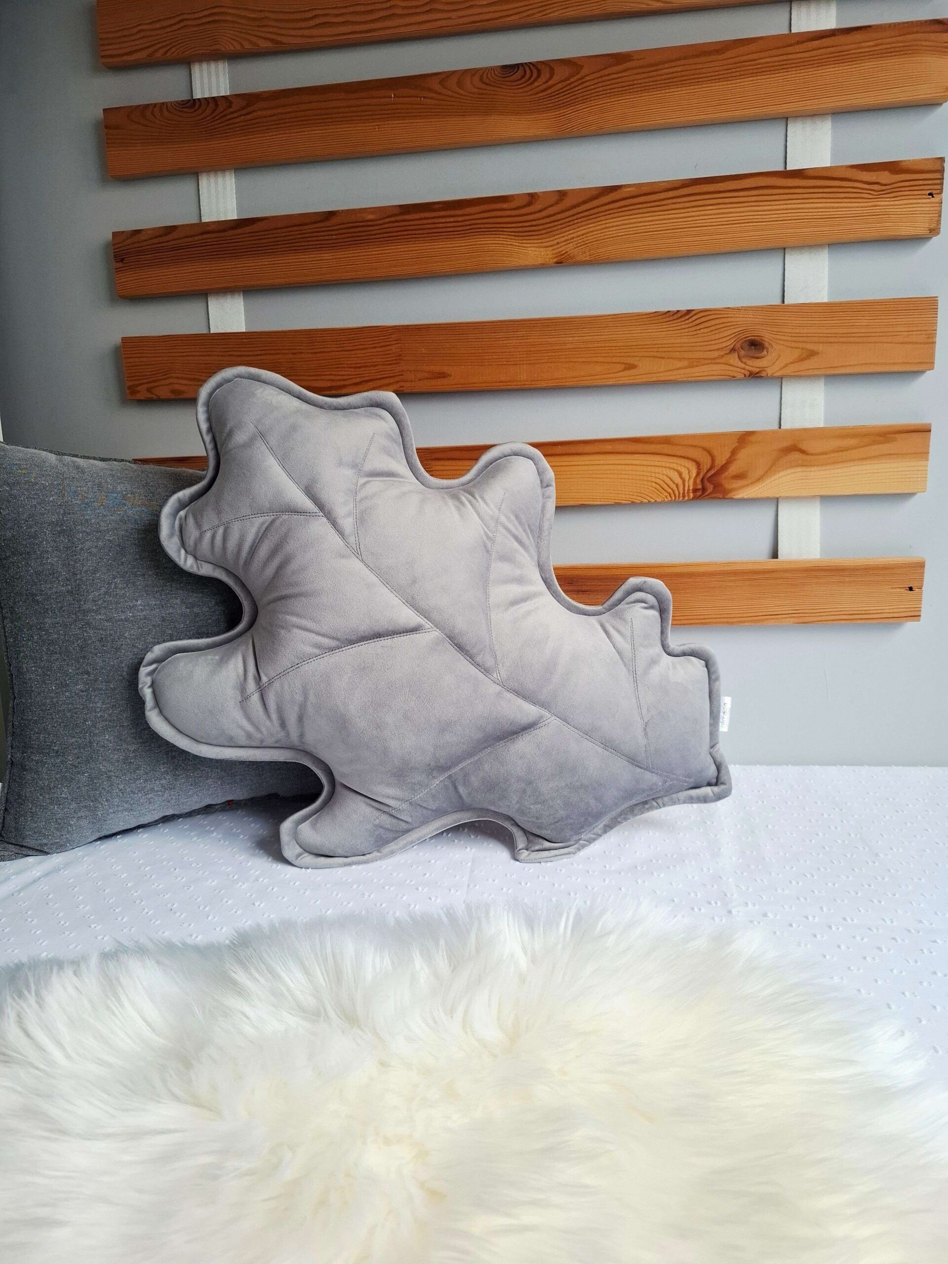 Szara poduszka dekoracyjna w kształcie liścia dębu powstała z myślą o wnętrzach, które potrzebują odświeżenia bez wprowadzania krzykliwych kolorów. Zaprojektowałam ten wzór dla osób, które chcą przełamać surowość nowoczesnej, szarej kanapy lub dodać naturalnego, miękkiego kształtu do minimalistycznej sypialni. Zobacz, jak ten dębowy liść odmieni Twoją codzienną przestrzeń.