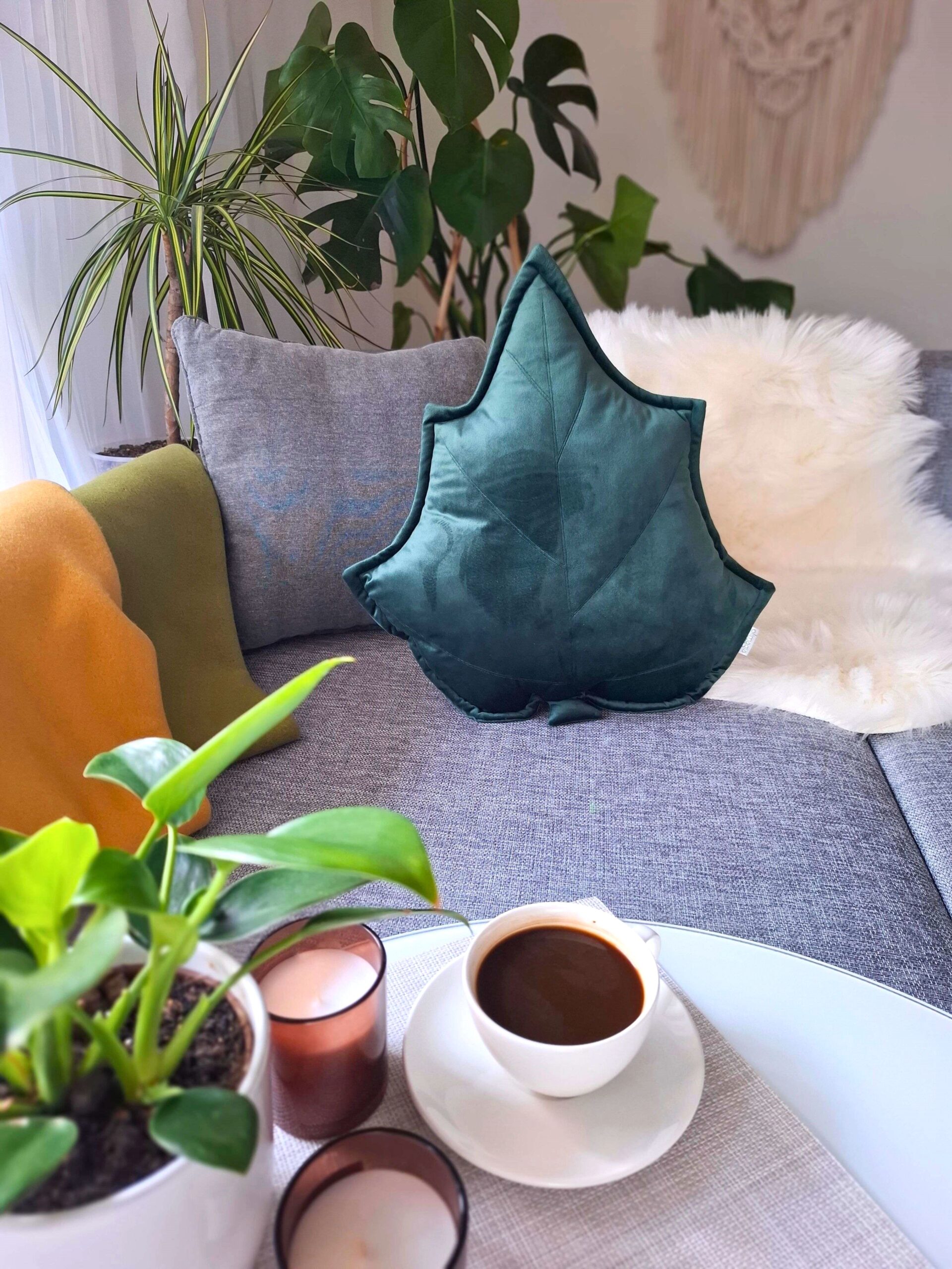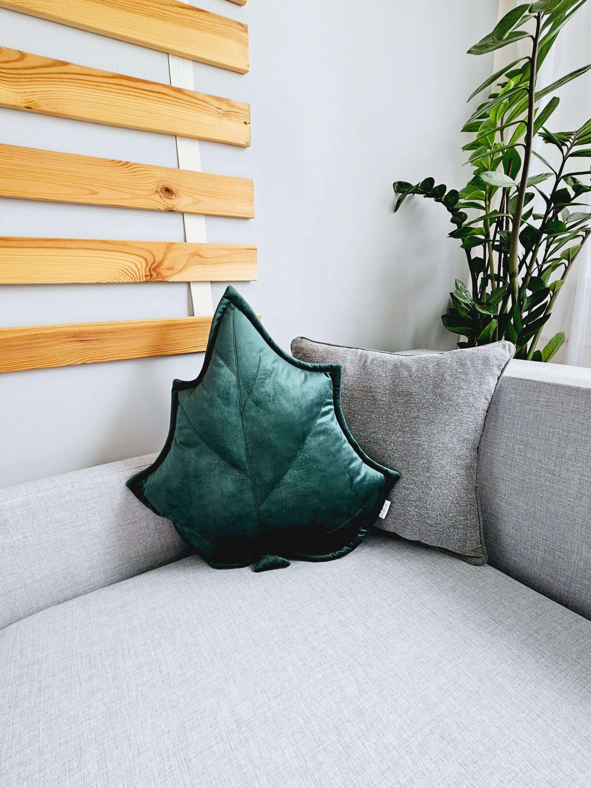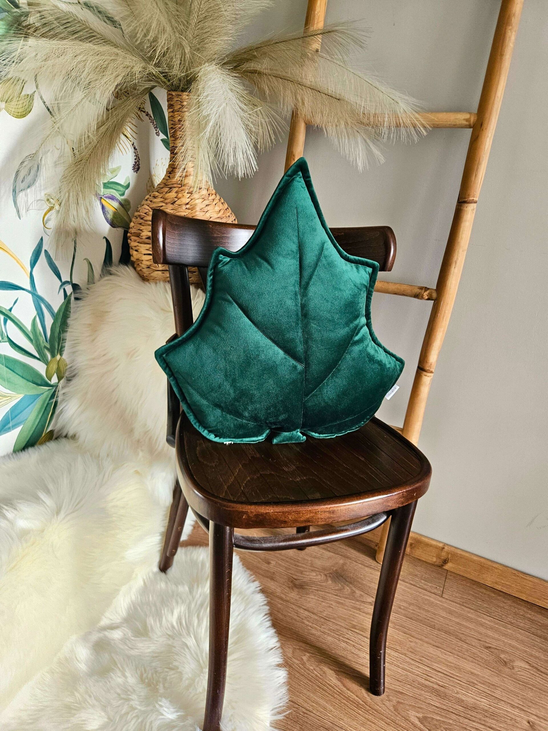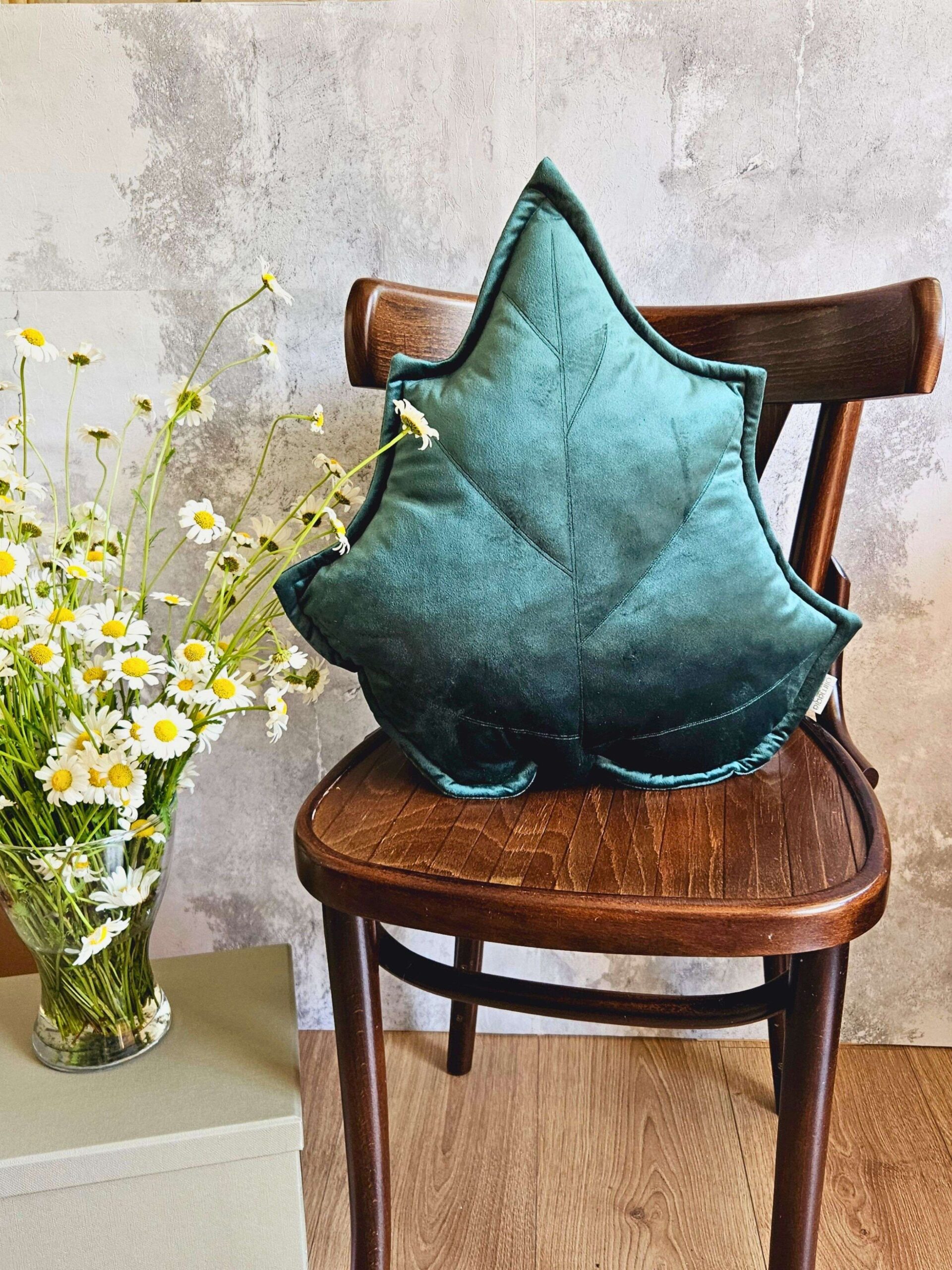 Zielona poduszka dekoracyjna liść brzozy – polskie rękodzieło, które ożywi Twój salon
