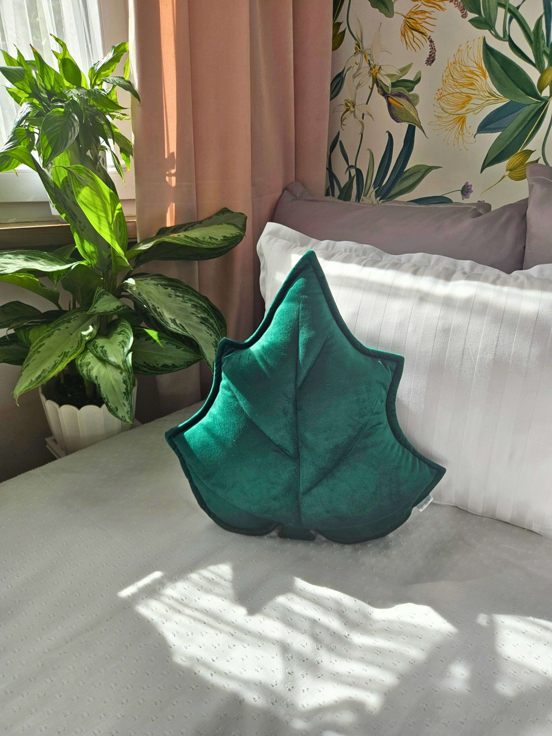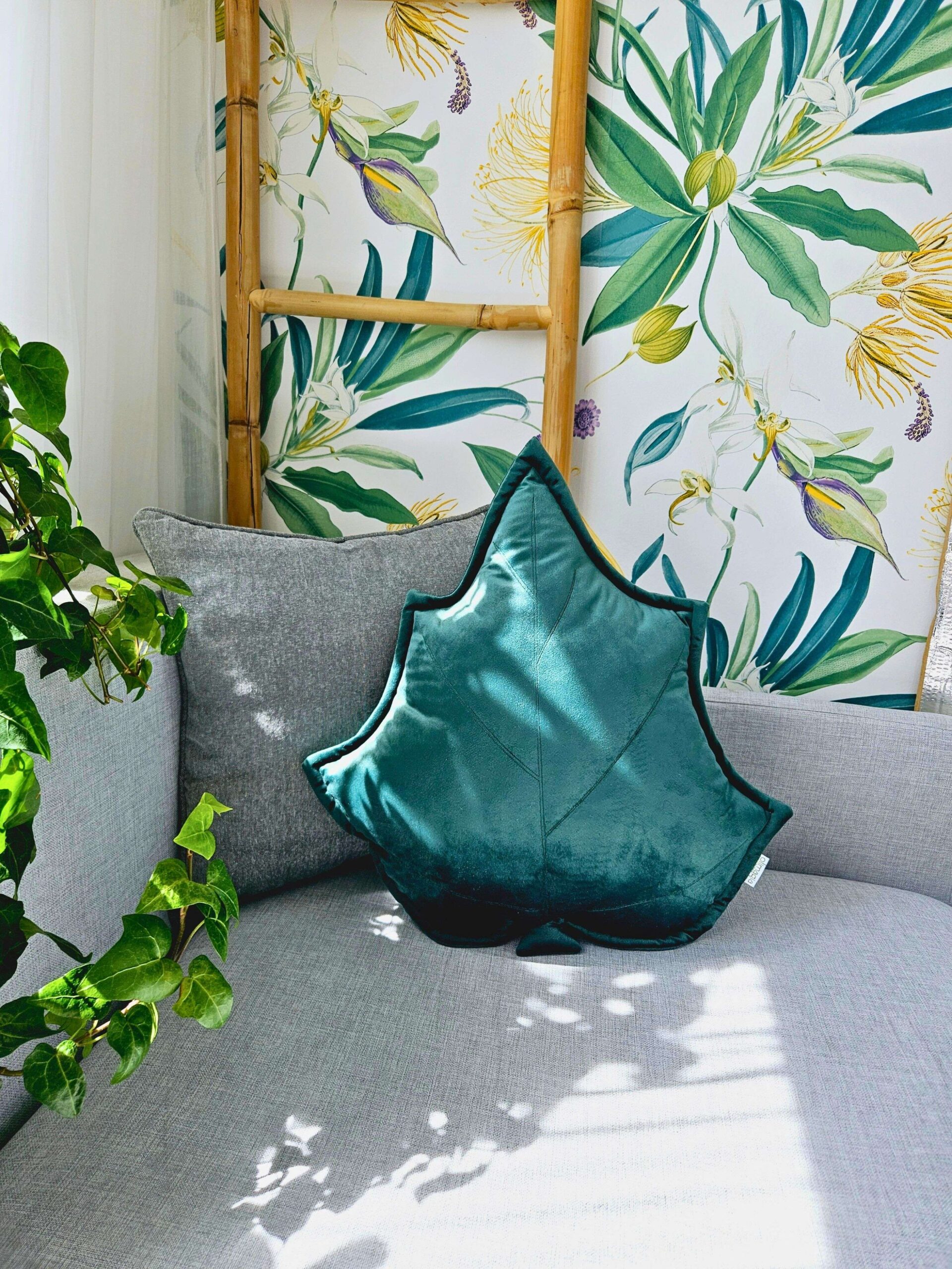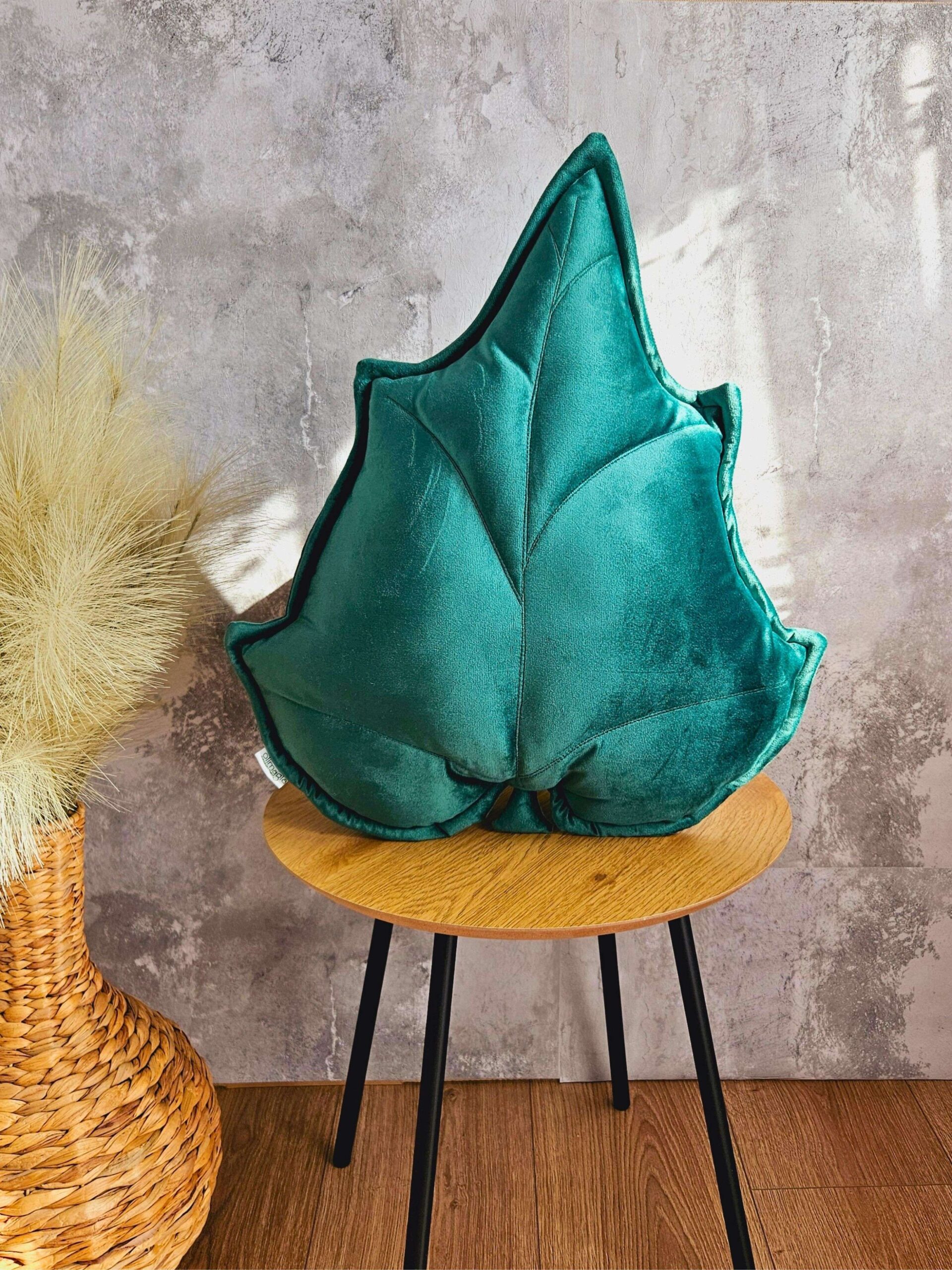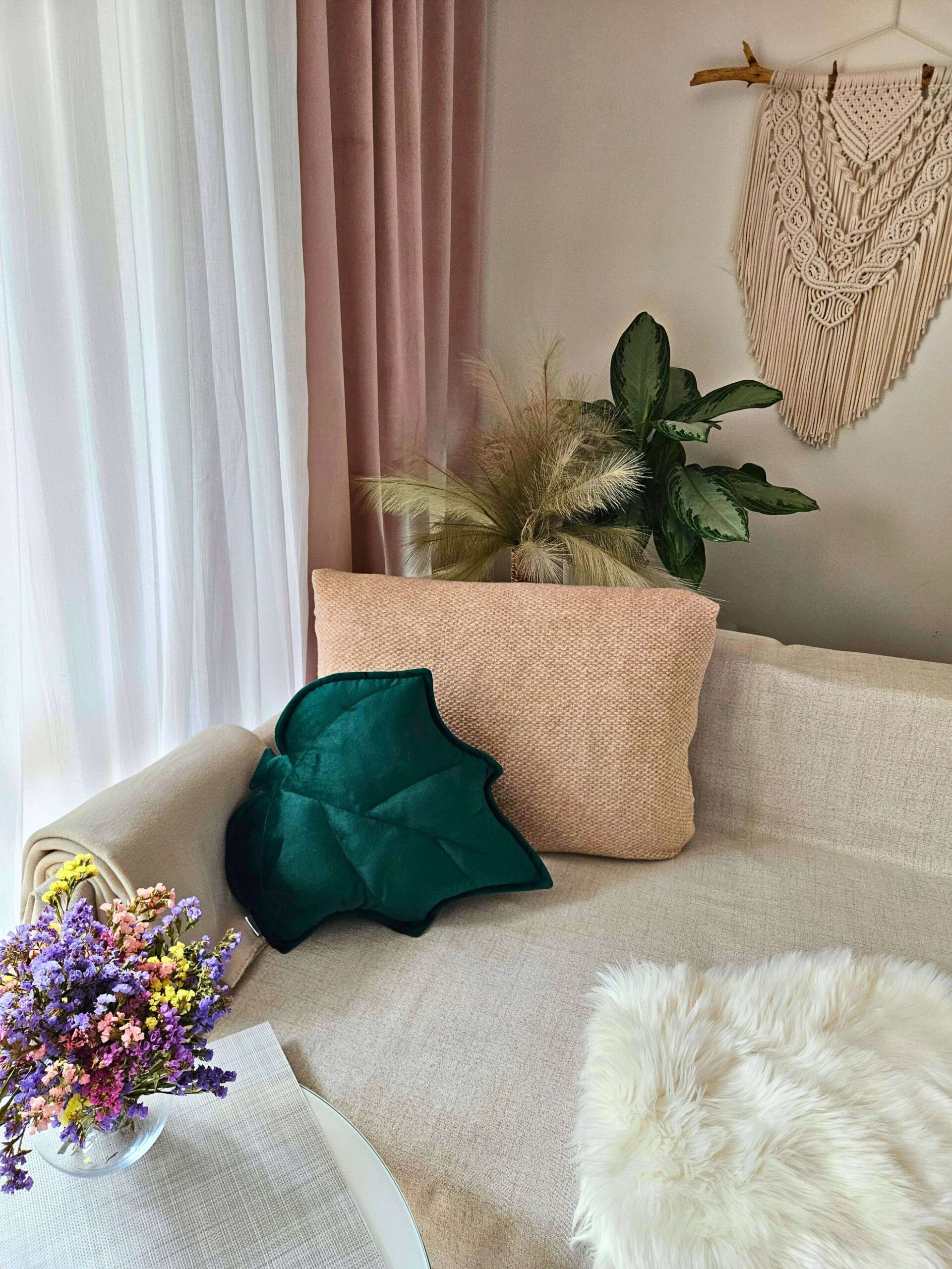 Zielona poduszka dekoracyjna liść brzozy – polskie rękodzieło, które ożywi Twój salon